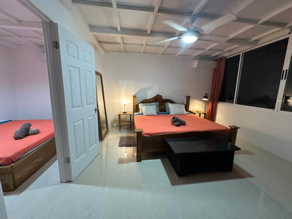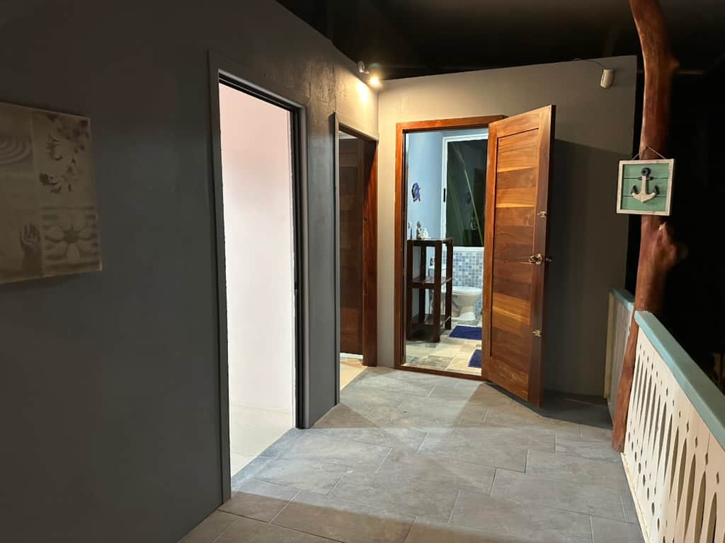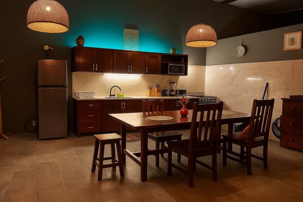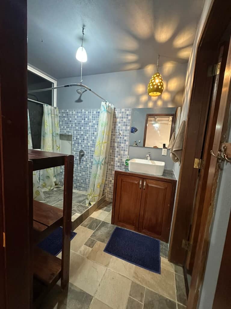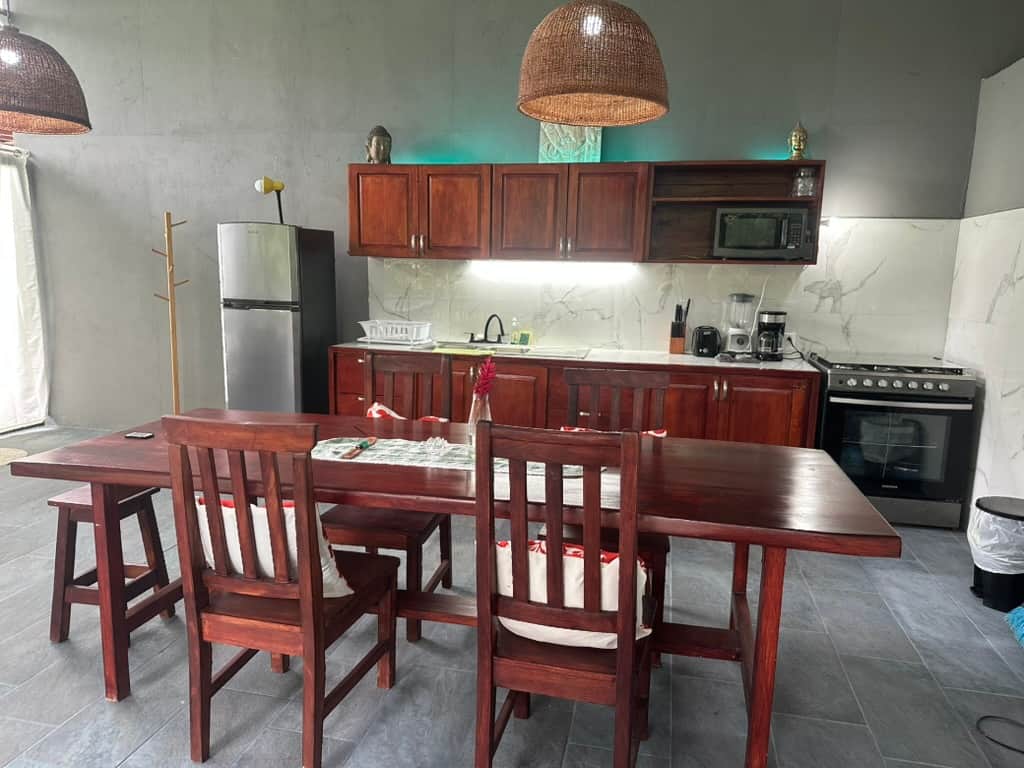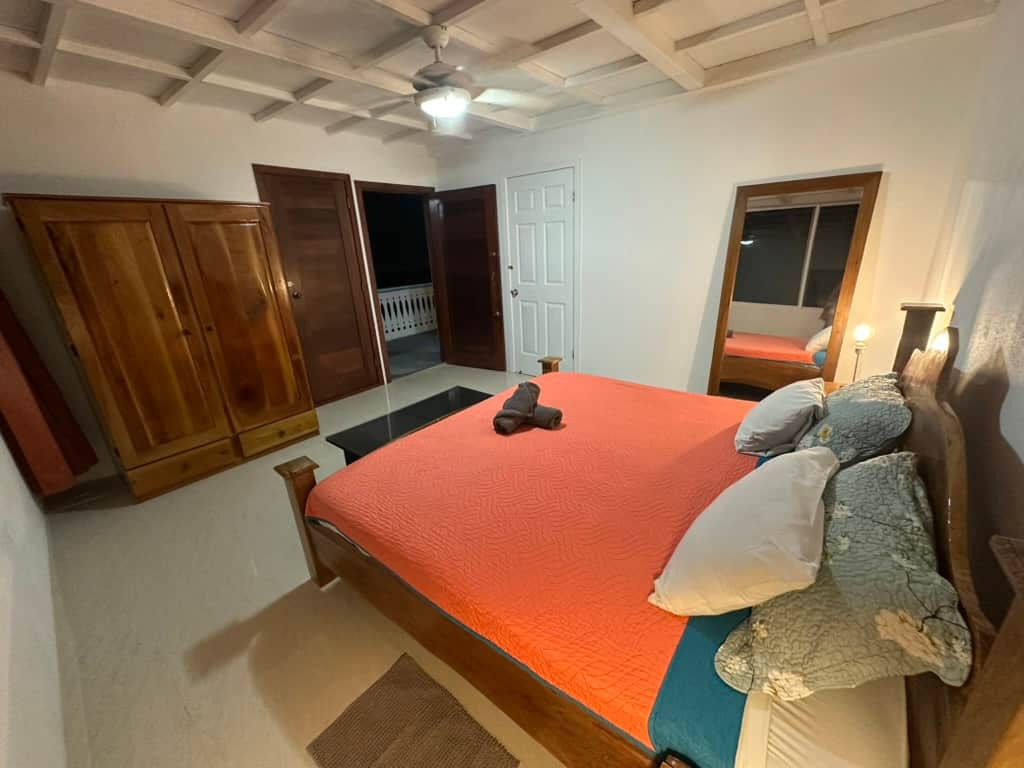 Apartamento tipo casa del árbol de 2 habitaciones, con aire acondicionado en ambas, internet wifi de fibra óptica, 1 baño con agua caliente, Smart TV, cocina con estufa grande, refrigerador, microondas y utensilios básicos de cocina. 1 cama king size (hecho con 2 colchones individuales) en cada habitación.