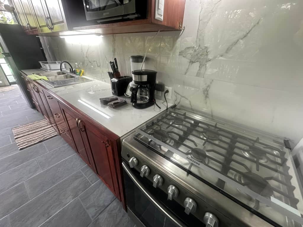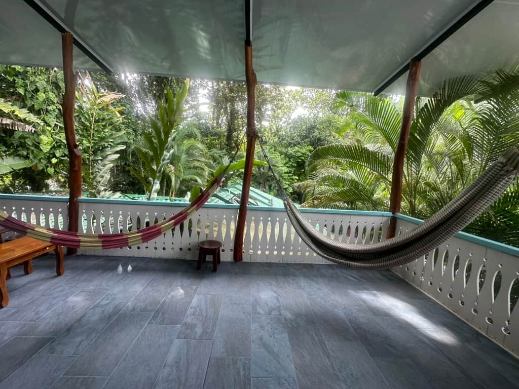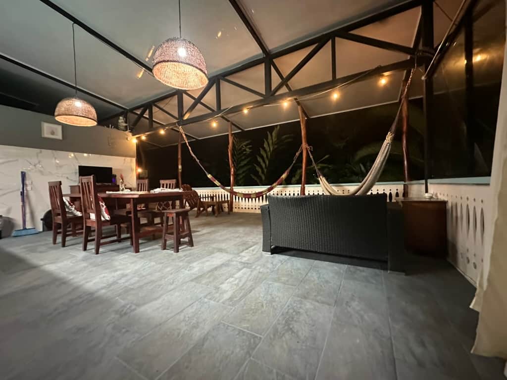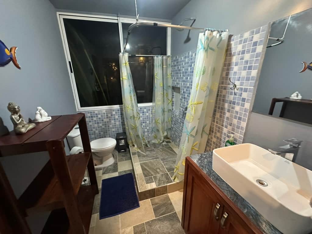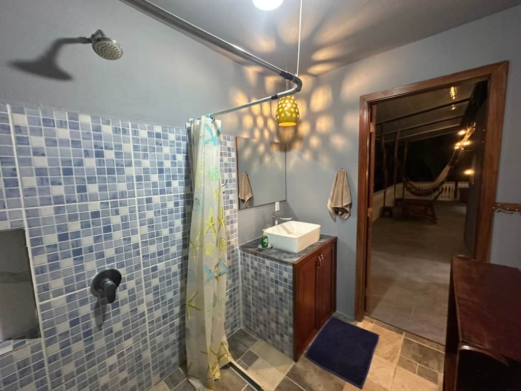 Apartamento tipo casa del árbol de 2 habitaciones, con aire acondicionado en ambas, internet wifi de fibra óptica, 1 baño con agua caliente, Smart TV, cocina con estufa grande, refrigerador, microondas y utensilios básicos de cocina. 1 cama king size (hecho con 2 colchones individuales) en cada habitación.